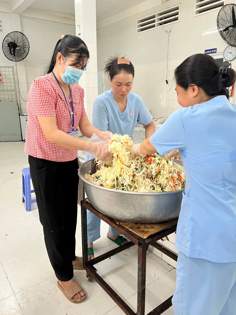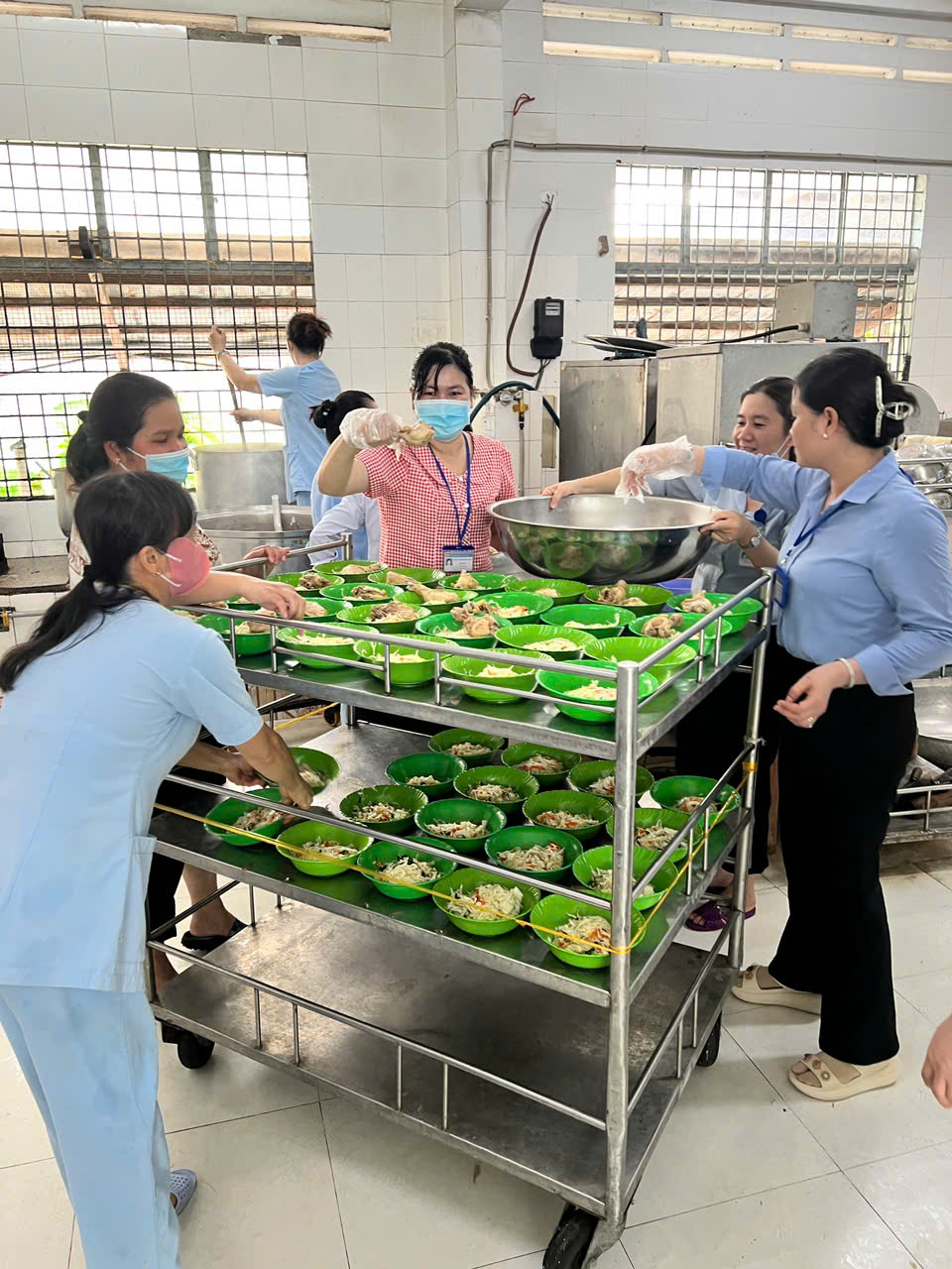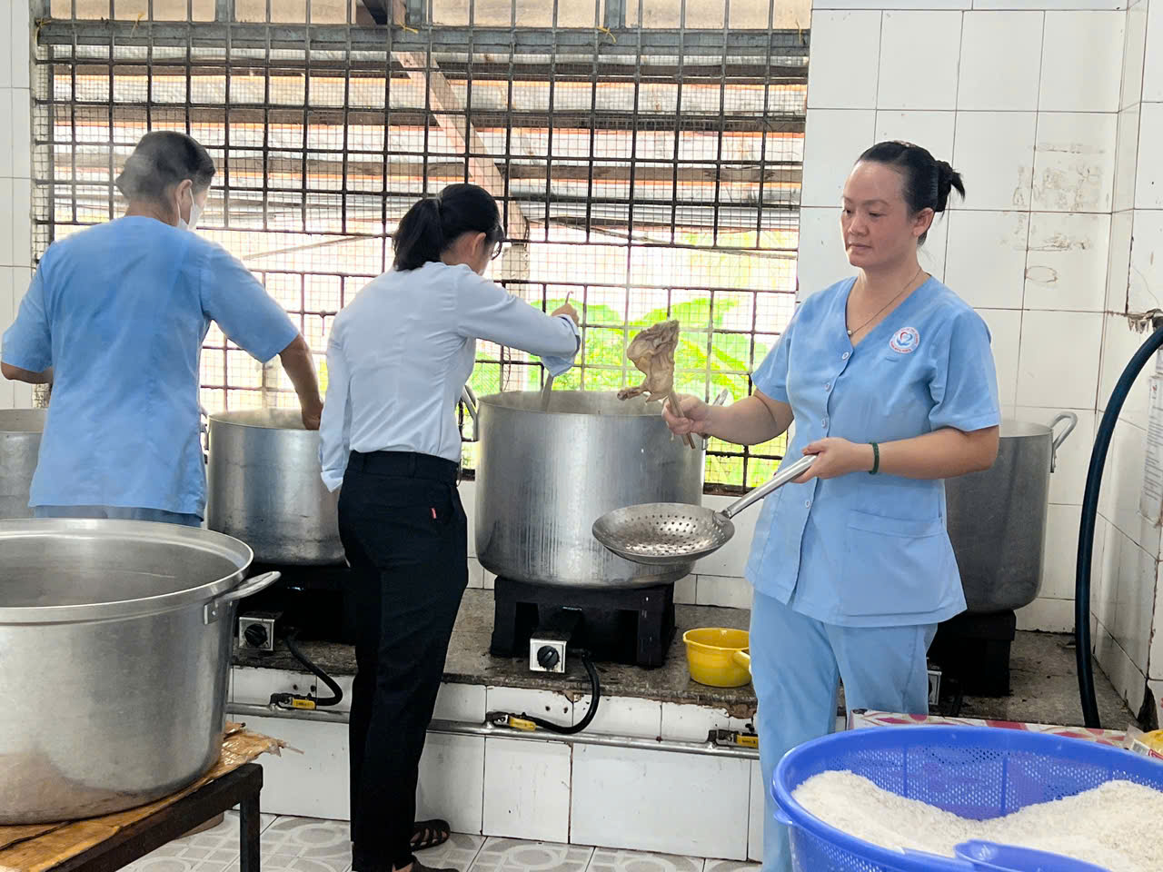 Đặc biệt đội ngũ nhân viên y tế trực tiếp đi chợ, sơ chế và nấu những nồi cháo ngay tại bếp ăn của bệnh viện. Mỗi phần cháo được chuẩn bị chu đáo, trao tận tay bệnh nhân, kèm lời thăm hỏi và động viên ân cần.